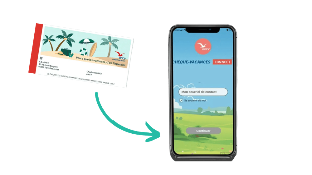 Bon à savoir : Pour utiliser l'application ANCV, il est nécessaire de bénéficier de chèques vacances connect. Si cela n'est pas le cas, vous pouvez demander un échange de vos chèques papier pour les convertir en connect !